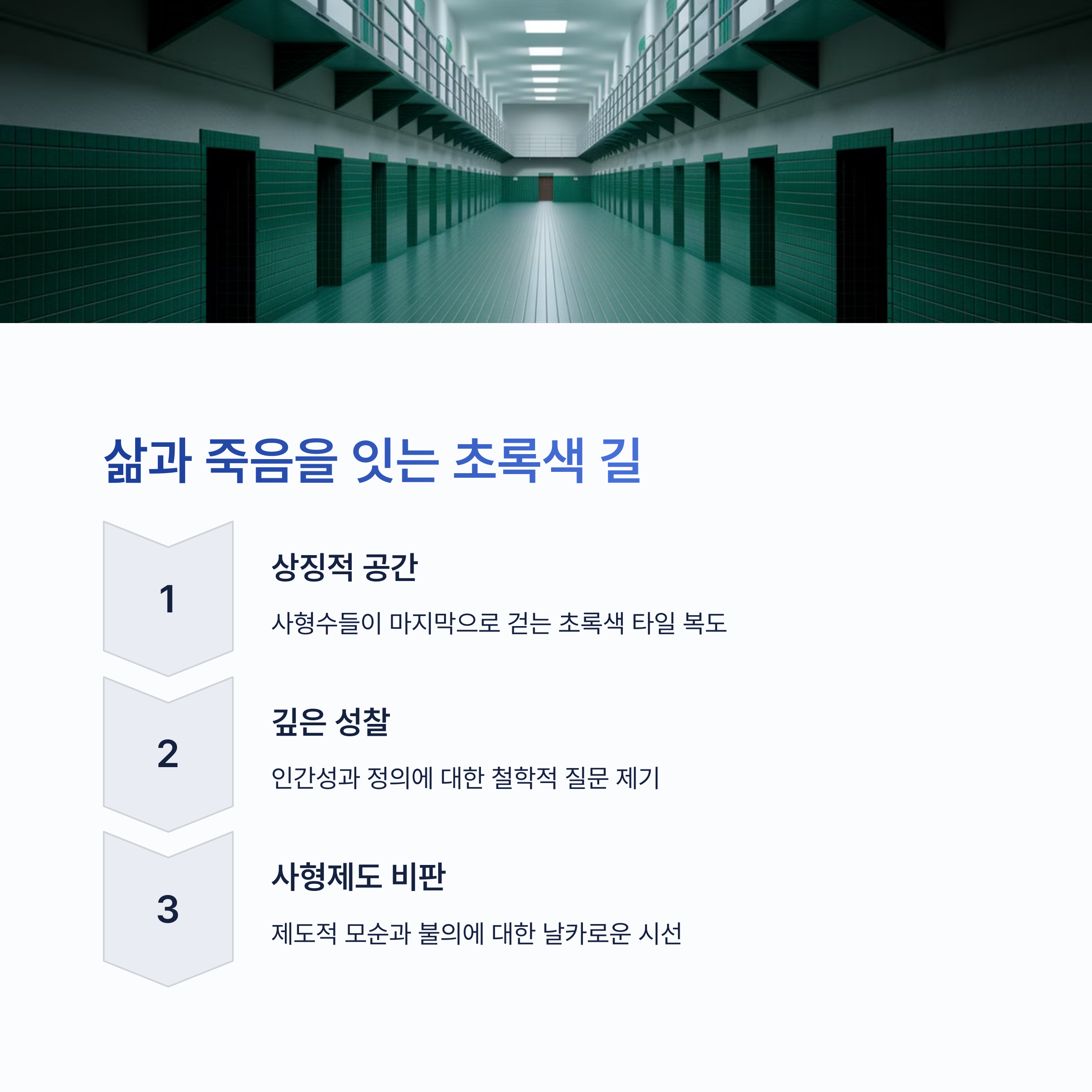 "그린 마일"은 단순히 영화적 스토리를 전달하는 데 그치지 않고, 극형제도가 지닌 근본적인 모순과 윤리적 문제에 대해 깊은 성찰을 제시합니다. 영화 속에서 등장하는 극형수들이 극형 처형장으로 향하는 초록색 복도, 즉 '그린 마일'은 삶의 마지막 순간을 상징하며 관객에게 강렬한 이미지를 남깁니다. 특히, 무죄의 가능성이 있는 존 커피의 극형 선고와 집행 과정을 통해 영화는 인간이 만든 법과 제도의 불완전성을 날카롭게 지적합니다.