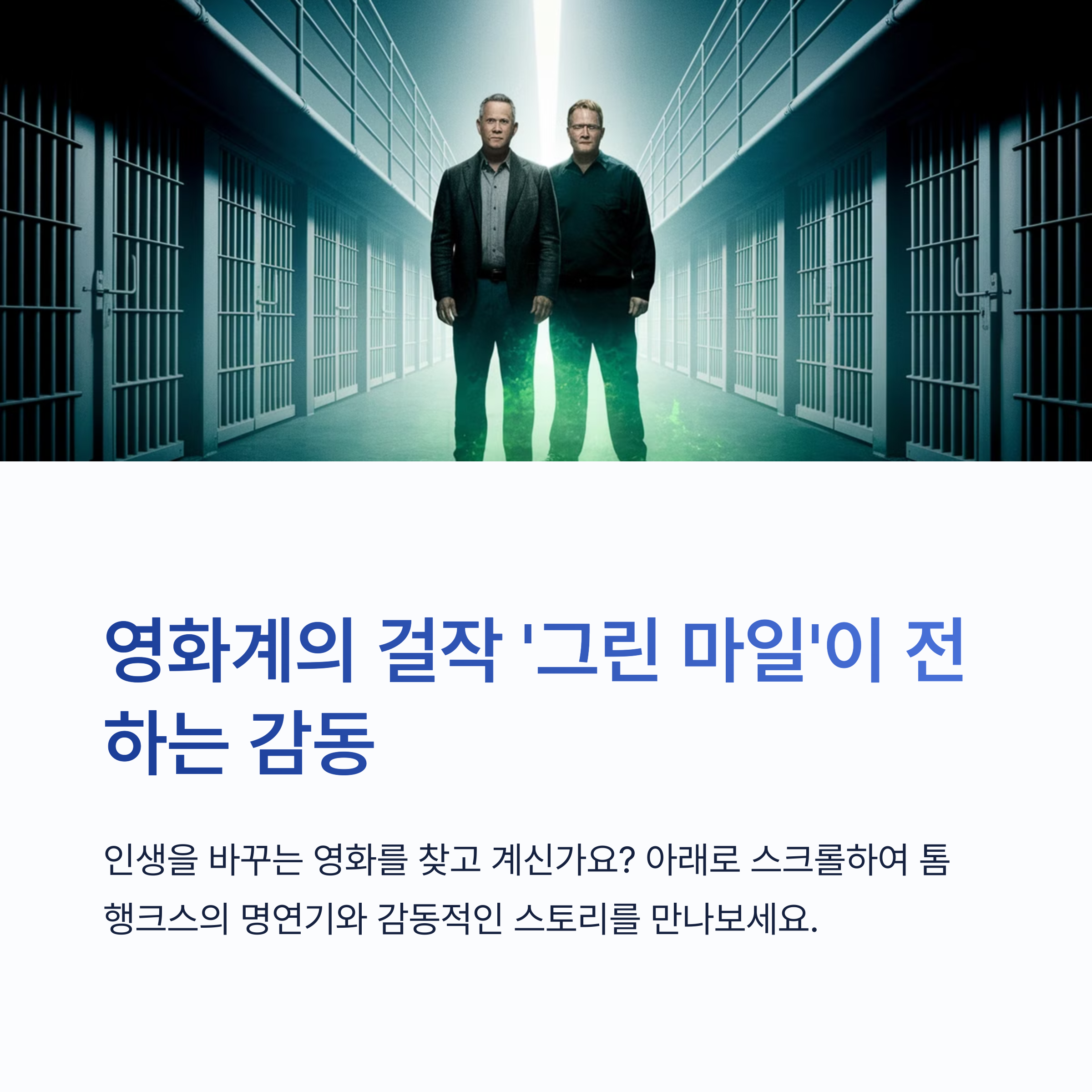 "그린 마일"은 1999년에 개봉한 프랭크 다라본트 감독의 영화로, 세계적인 작가 스티븐 킹의 동명 소설을 원작으로 합니다. 영화는 1935년 미국 루이지애나 주 콜드 마운틴 교도소의 극형수 감방을 배경으로, 교도관 폴 에지콤(톰 행크스)과 초자연적 능력을 가진 극형수 존 커피(마이클 클라크 던컨)의 깊고도 감동적인 이야기를 담고 있습니다.