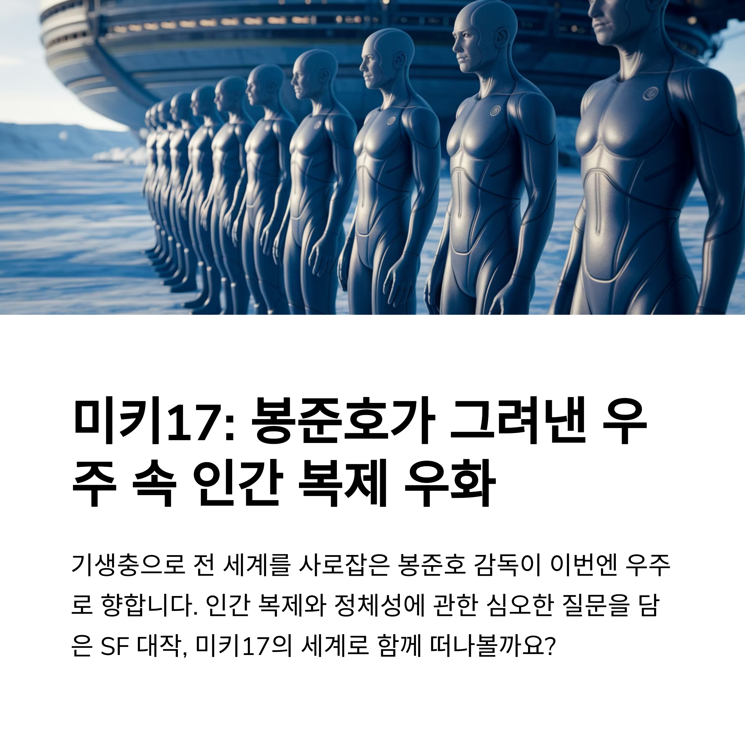 봉 감독님, '살인의 추억'을 고등학생 때 처음 본 이후로 당신의 모든 작품을 놓치지 않고 찾아보았습니다. '괴물'에서 '기생충'까지, 그리고 이제 '미키17'까지. 각 작품마다 한국적 정서를 잃지 않으면서도 보편적인 인간 이야기를 담아내는 능력은 정말 경이롭습니다.