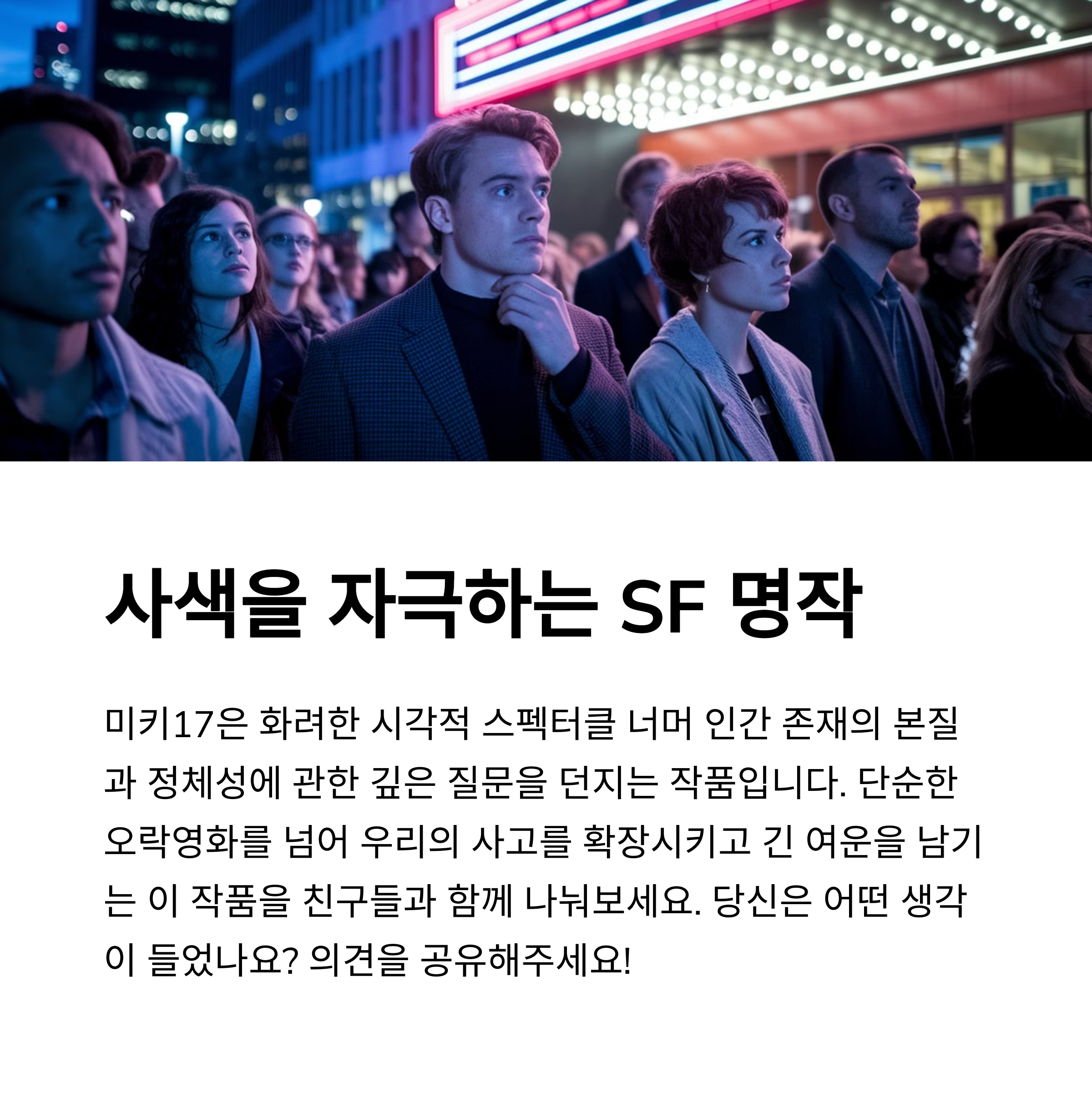 봉 감독님께서 인터뷰에서 "미키는 단순히 복제된 존재가 아니라, 스스로 가치를 발견해가는 인물"이라고 설명하셨는데, 이 말이 영화를 이해하는 데 큰 도움이 되었습니다. 자신을 대체품으로만 여기는 시스템에 맞서, 자신의 존재 가치를 증명해가는 미키의 여정은 현대인의 정체성 고민과 맞닿아 있습니다.