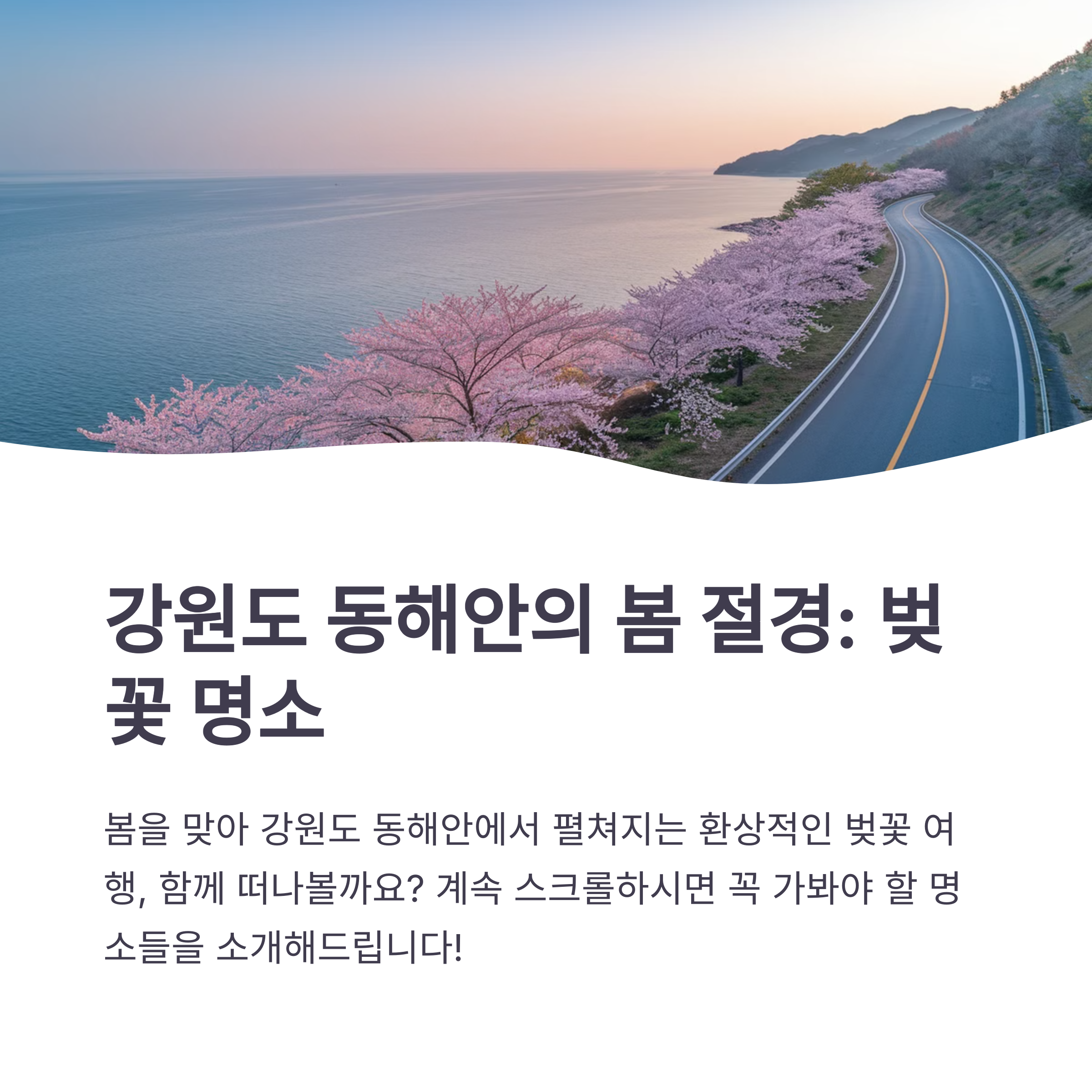 이 아름다운 장면을 놓치고 싶지 않다면, 지금 동해안 벚꽃 여행을 계획해보세요. 꽃잎이 바람에 흩날리는 그 순간, 당신의 마음도 함께 피어날 겁니다!