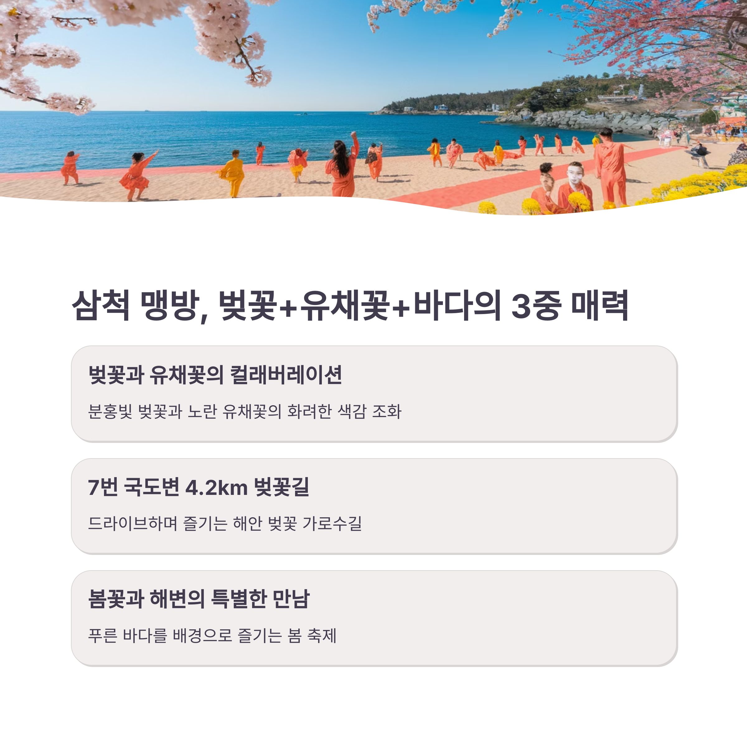 3. 삼척 맹방 유채꽃축제: 삼색의 봄 풍경