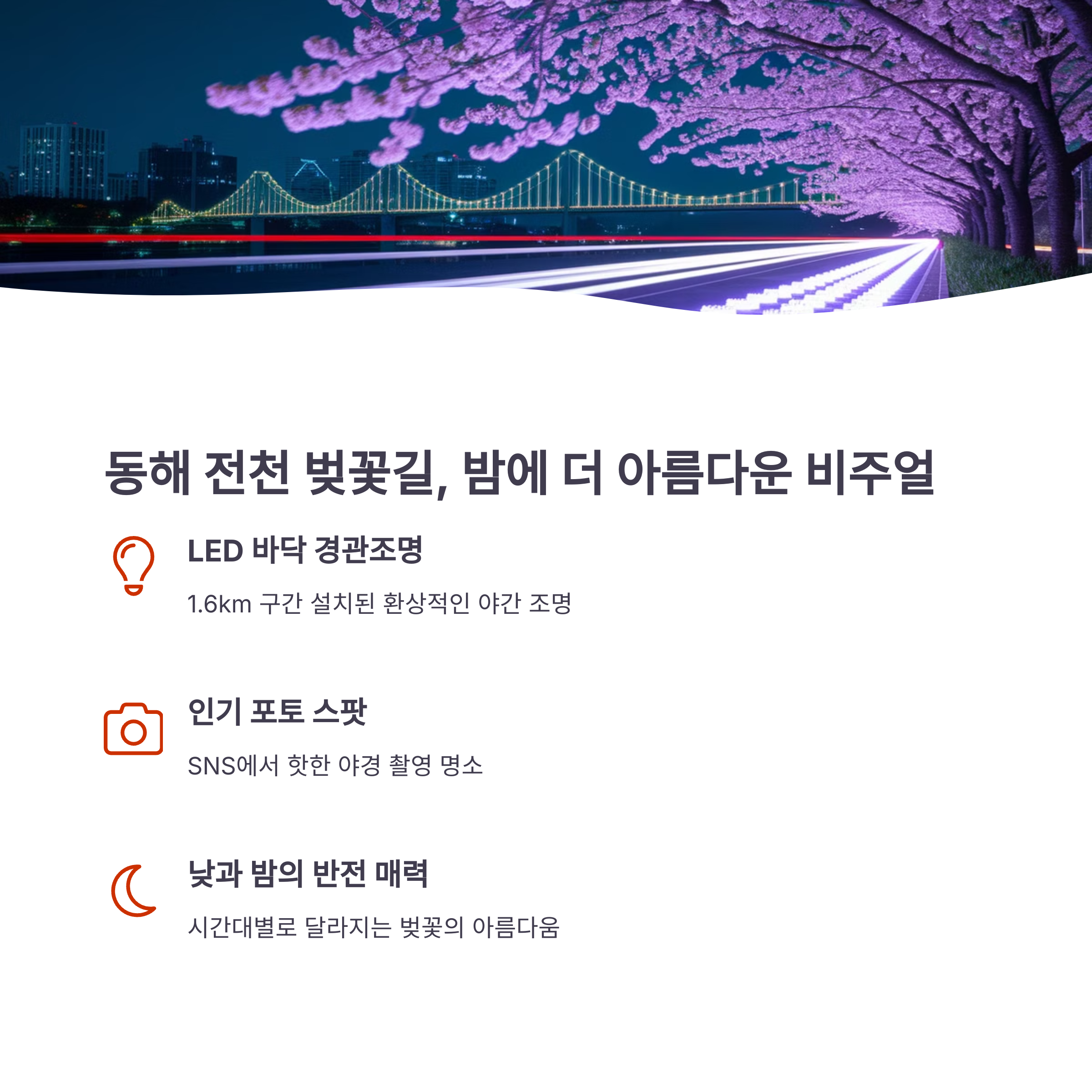 2. 동해 전천 벚꽃길: 빛으로 물든 밤의 동화