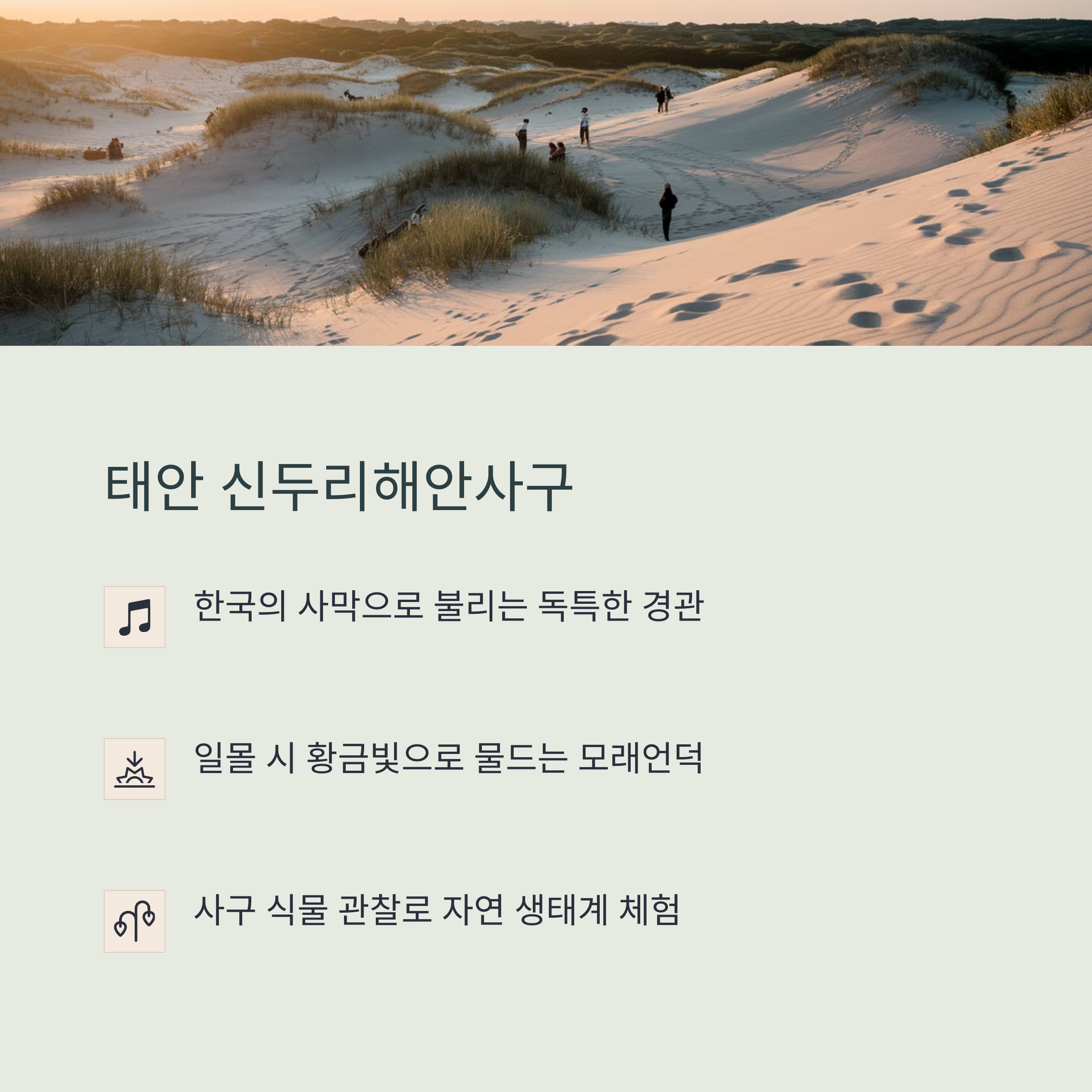 1. 태안 신두리해안사구: 사막 속 붉은 하늘의 마법