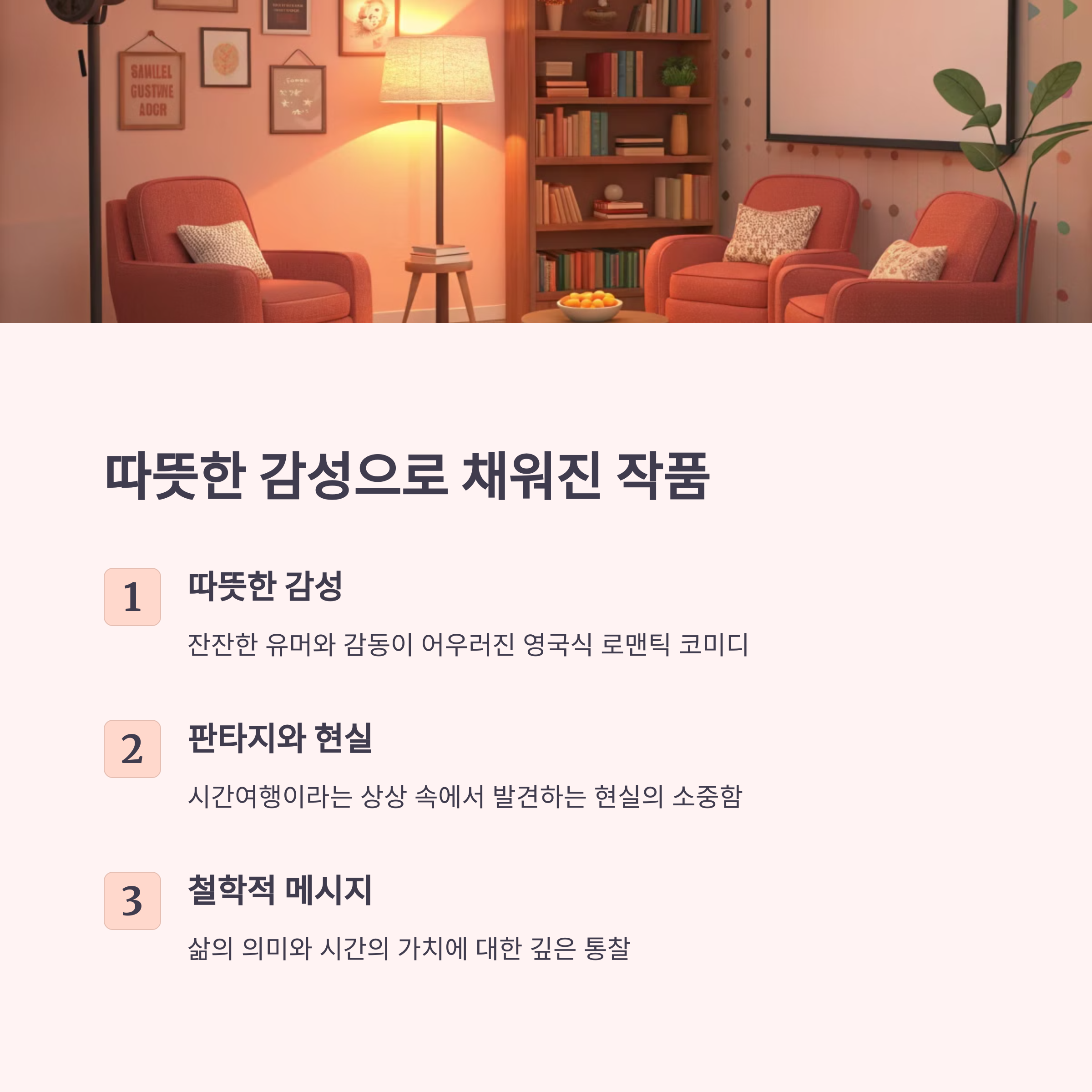 영화 '어바웃타임'의 진정한 메시지는 시간여행의 환상이 아닌, 지금 이 순간의 소중함을 깨닫는 것에 있었습니다. 주인공 팀이 결국 깨달은 것처럼, 매일을 마지막 날처럼 두 번 살아가는 마음가짐이야말로 진정한 '시간여행'의 비밀이 아닐까요?