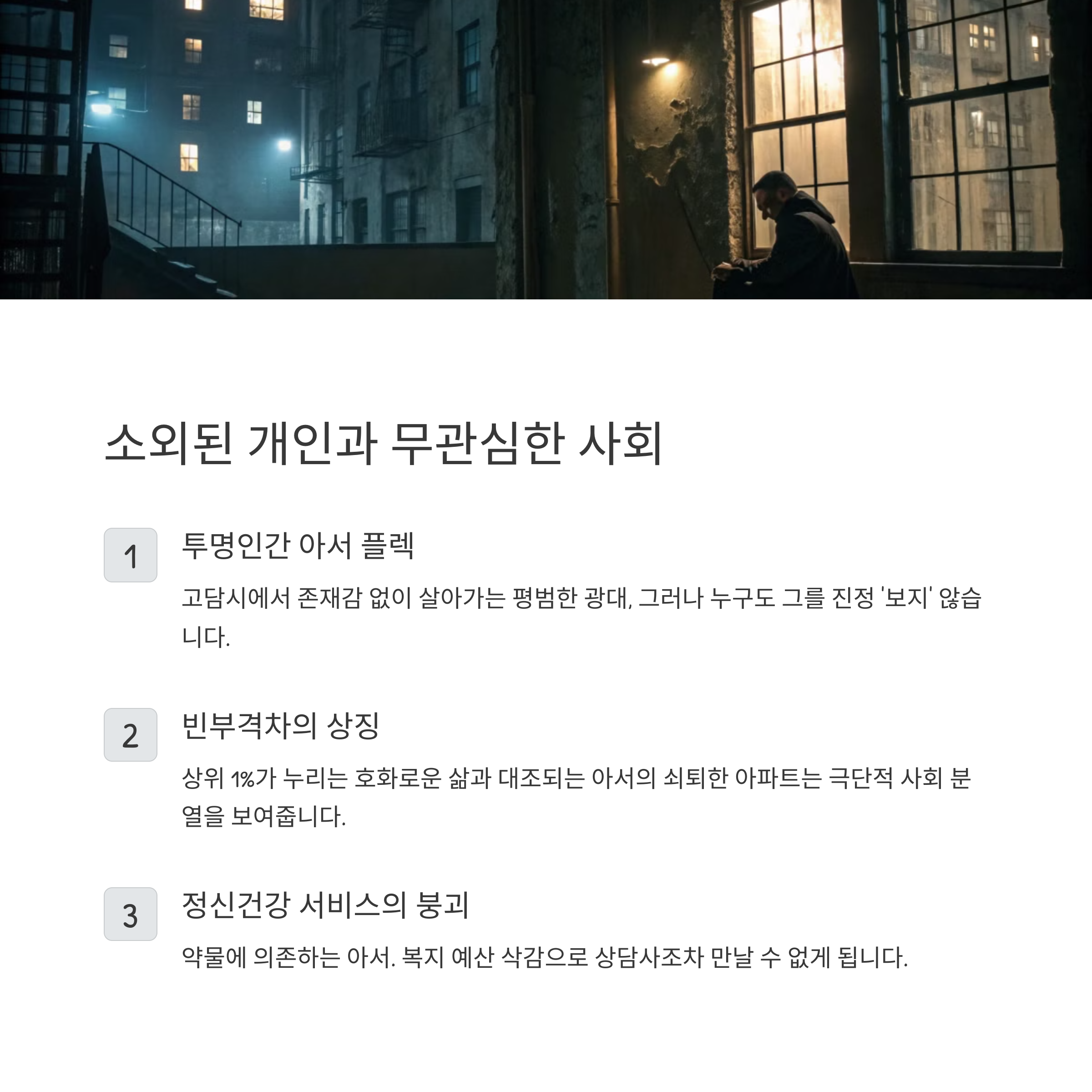 소외된 개인과 무관심한 사회의 초상화