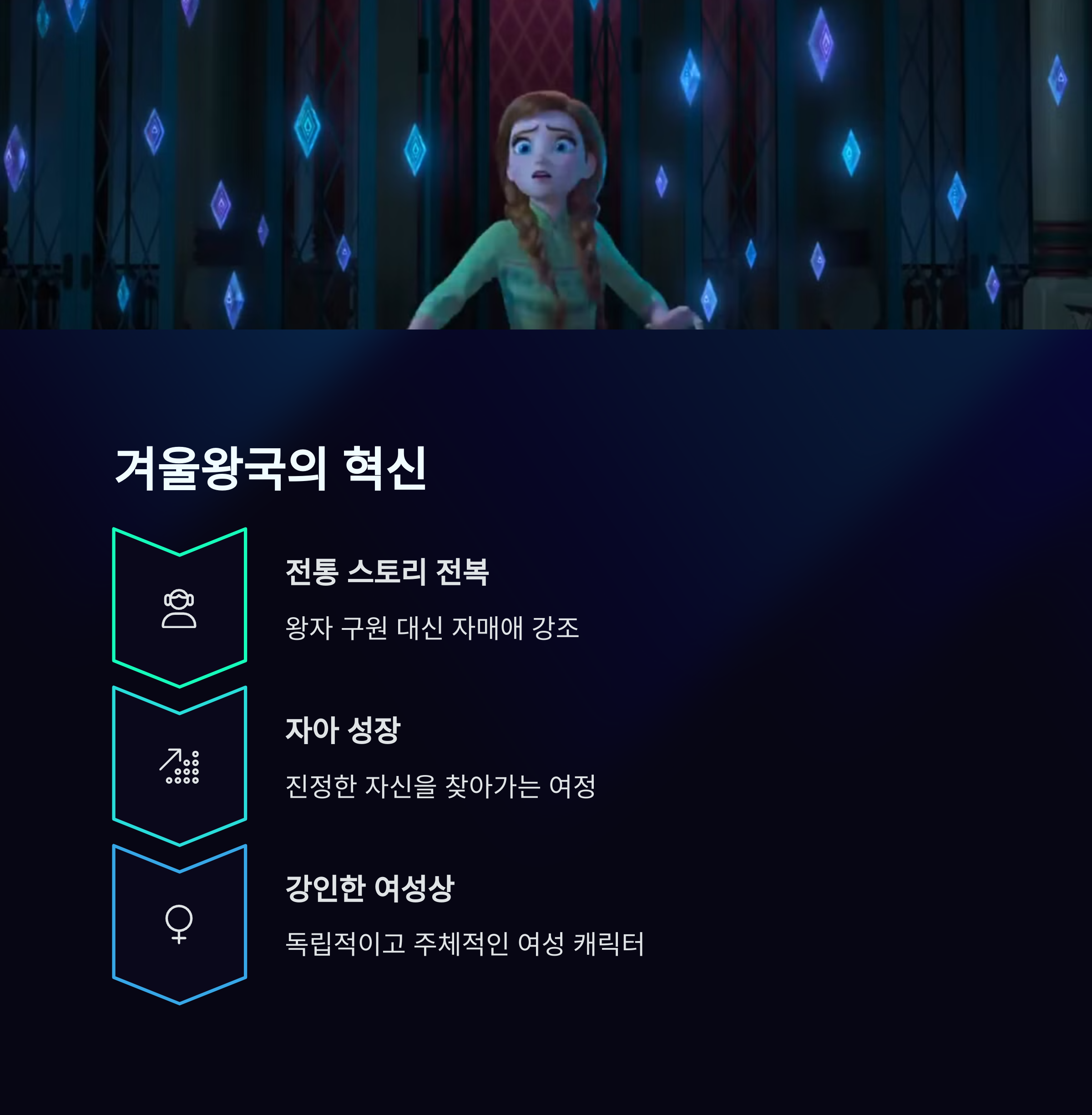 엘사와 안나 자매의 이야기를 그린 이 영화는 엘사의 마법으로 인해 얼어붙은 왕국을 구하기 위한 여정을 담고 있습니다. 자매의 사랑과 희생, 그리고 용기를 통해 가족의 소중함을 일깨워줍니다. 아름다운 음악과 화려한 애니메이션은 모든 연령층을 매료시킵니다.