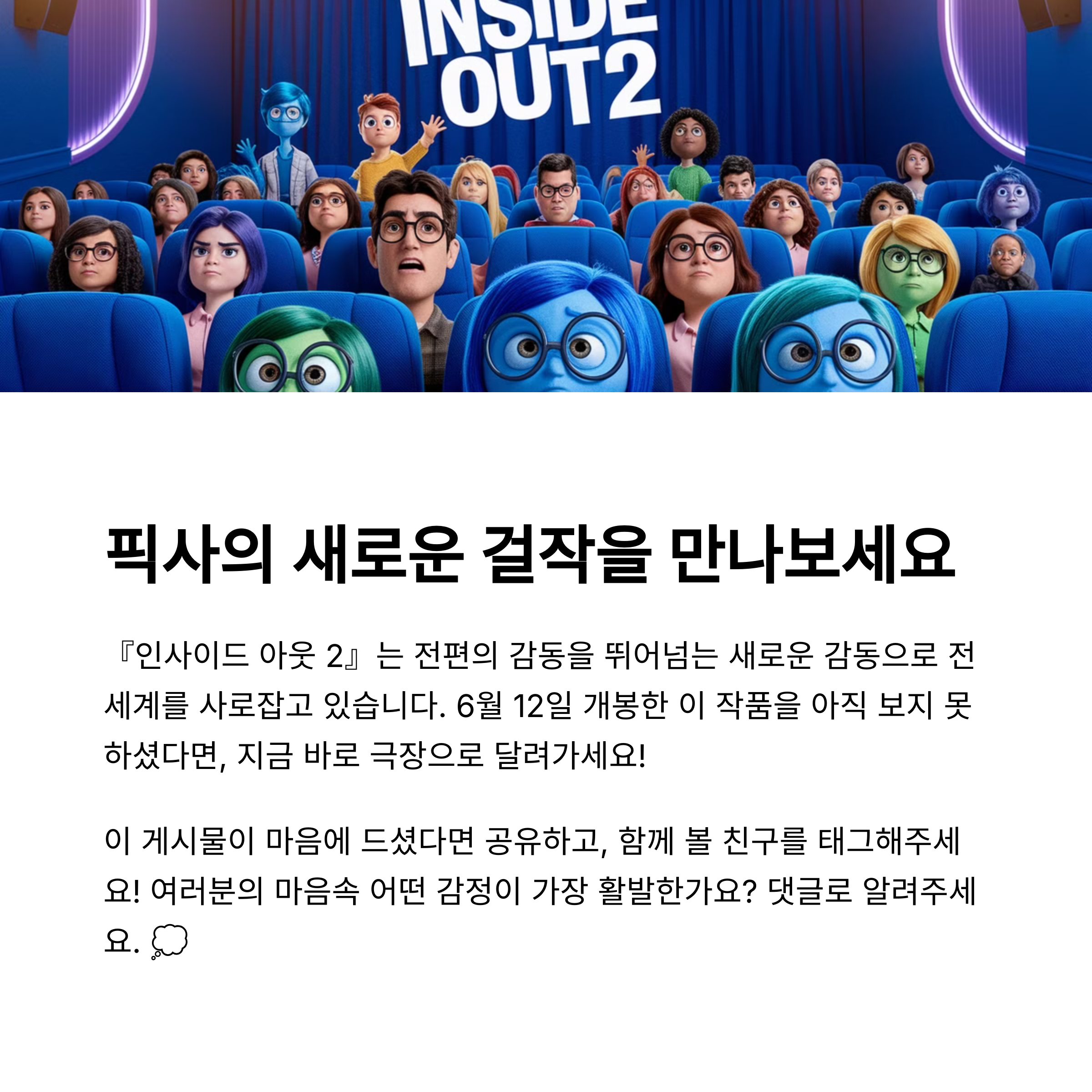 아직 관람하지 못했다면, 꼭 한 번 극장을 찾아 이 따뜻하고 유쾌한 감정 여행을 떠나보시길 강력 추천합니다!