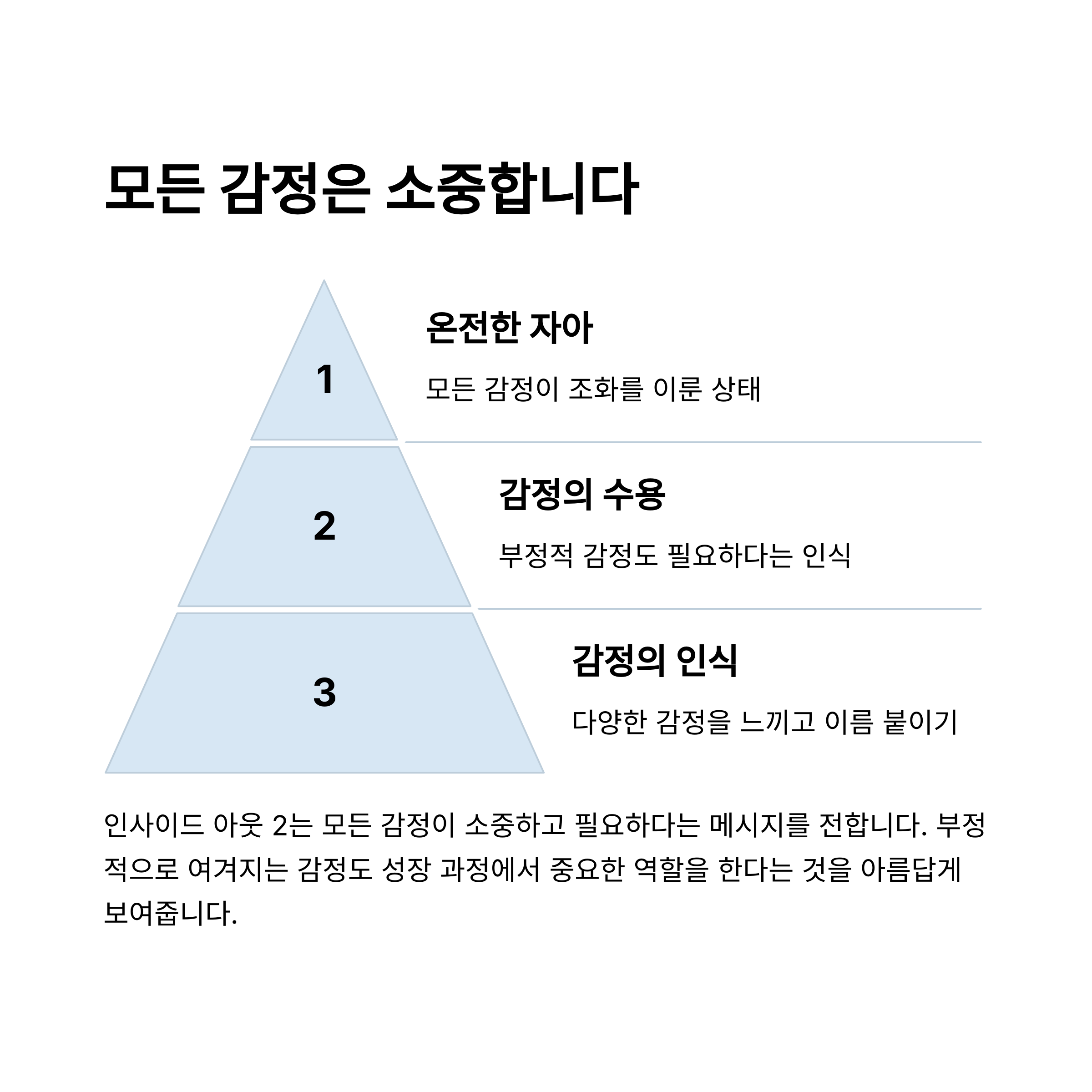 라일리의 감정 캐릭터들은 때론 실수를 하지만 결국 그 실수를 통해 배우고 성장합니다. 영화 속 명대사처럼 "중요한 것은 완벽하게 감정을 통제하는 것이 아니라, 모든 감정을 인정하고 받아들이는 것"입니다.
