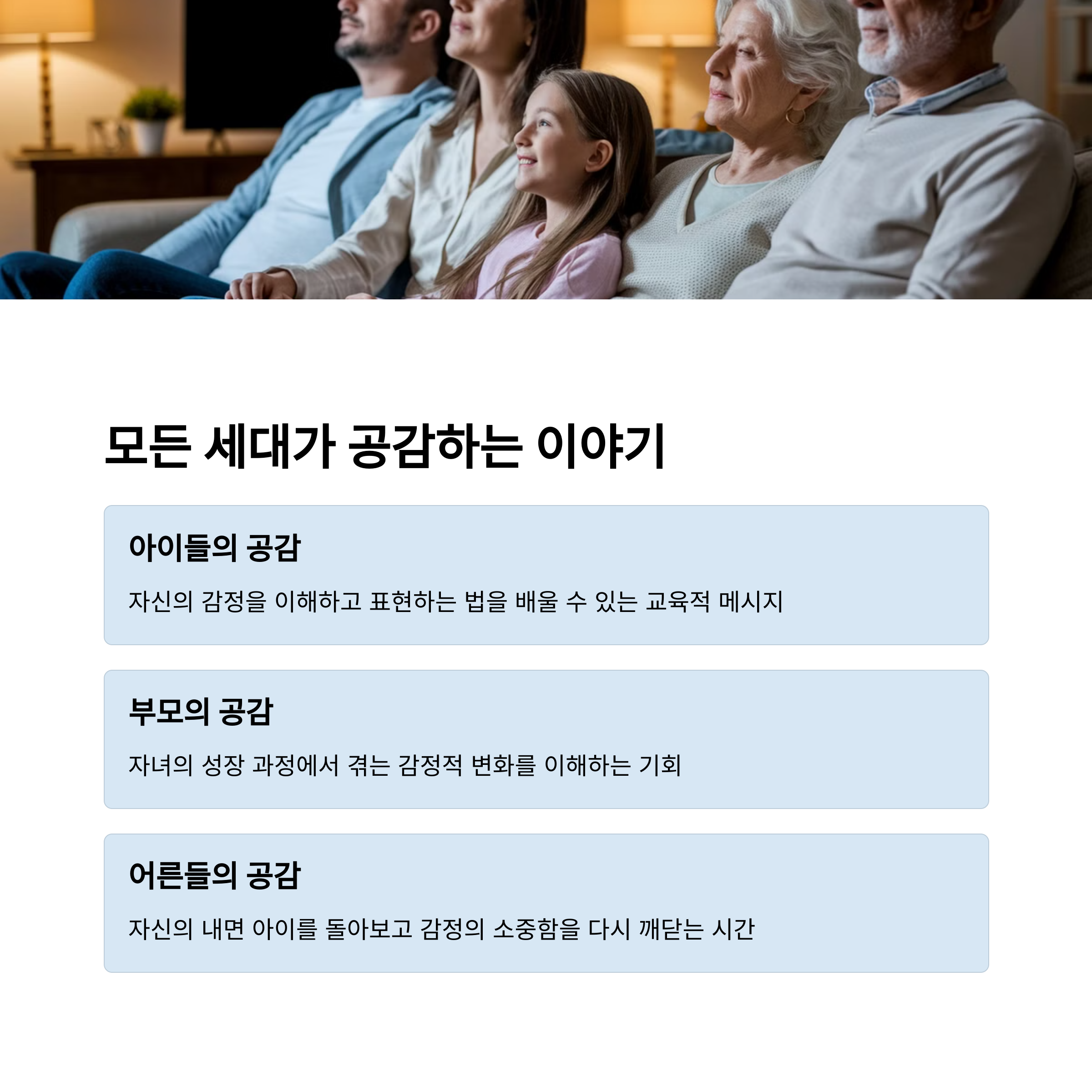 이 작품이 단지 어린이들만의 이야기가 아닌 이유는, "우리가 겪는 모든 성장은 결국 감정을 통해 이루어진다"는 메시지를 담고 있기 때문입니다. 사춘기라는 시기는 누구에게나 어렵고 복잡하지만, 영화는 이 시기를 "감정의 폭풍 속에서 자기를 발견하는 시기"로 표현하며 따뜻하게 위로해 줍니다.