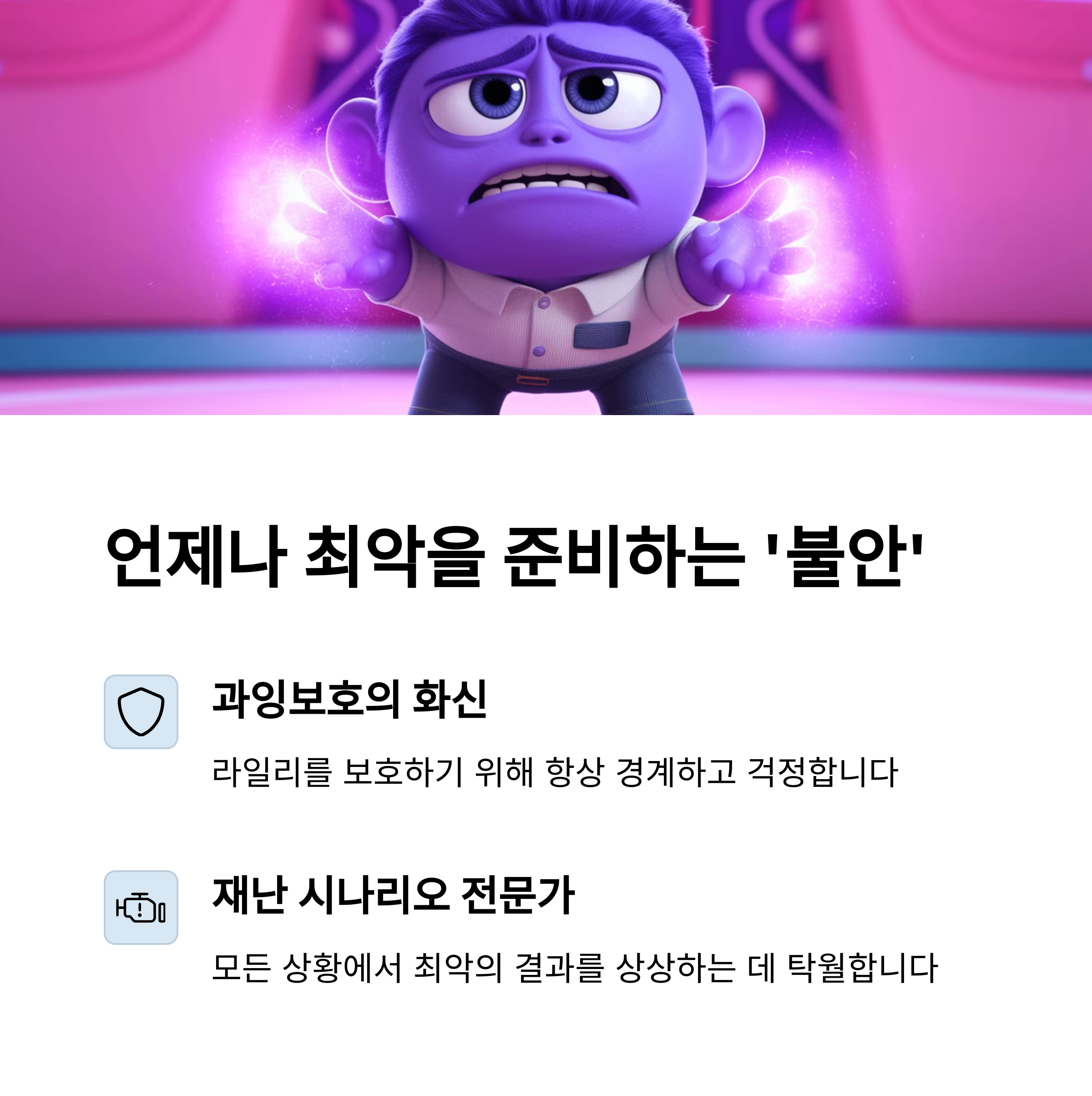 특히, 불안 캐릭터는 라일리가 미래에 대해 과도하게 걱정하는 모습을 보여주며 "지나친 걱정은 미리 하는 고생이다"라는 한국 속담을 떠오르게 합니다. 또한, 부끄러움은 사회적 관계 속에서 발생하는 수줍음과 민망함을 통해 "누구나 자기만의 부끄러운 기억이 있다"는 보편적인 공감을 끌어내 관객들의 웃음을 자아냈죠.