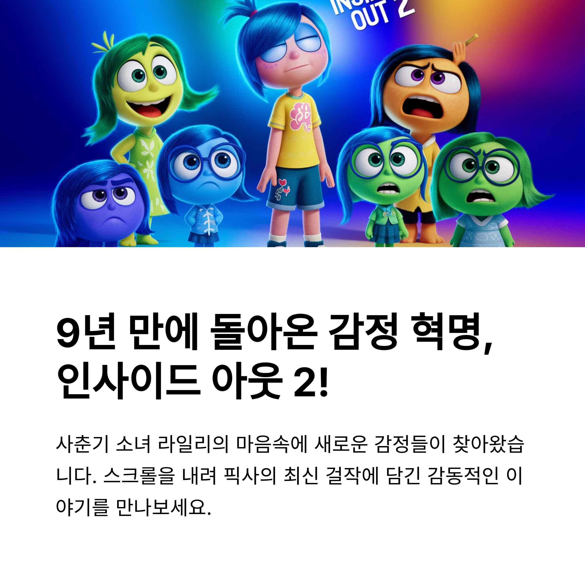 "좋은 이야기는 언제나 다시 돌아온다."는 말처럼, 픽사 애니메이션 스튜디오의 역작 『인사이드 아웃』이 9년 만에 속편으로 우리 곁에 돌아왔습니다. 『인사이드 아웃 2』는 2024년 6월 개봉과 동시에 전 세계 팬들의 열렬한 환호 속에서 박스오피스를 뜨겁게 달구었죠. 이 작품은 픽사의 28번째 장편으로, 전편의 명성을 이어가며 또 한 번 감동적인 성장 이야기를 선사합니다.