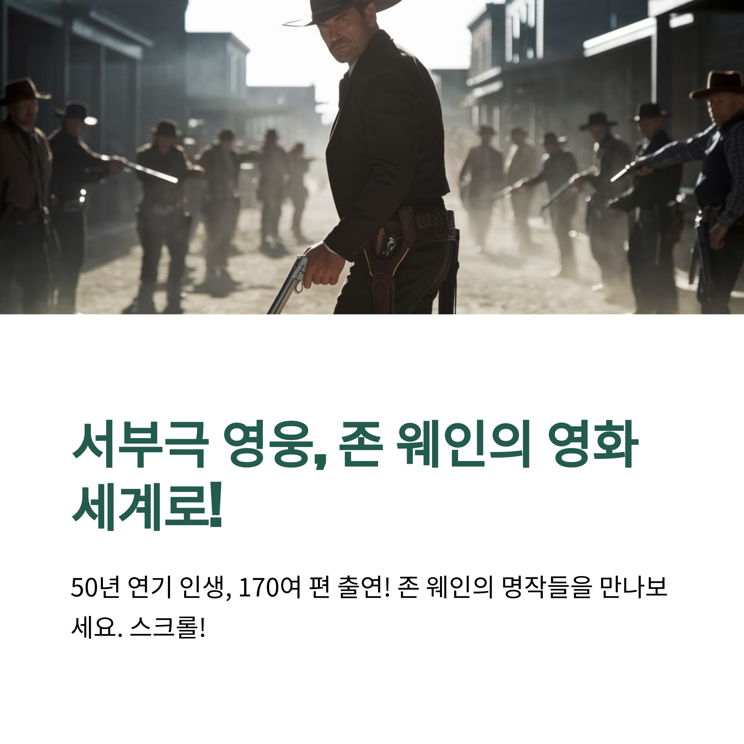 서부극 하면 떠오르는 배우, 그리고 헐리우드 황금기의 대표적인 아이콘 중 한 명을 꼽으라면 단연 "존 웨인(John Wayne, 1907~1979)"이다.