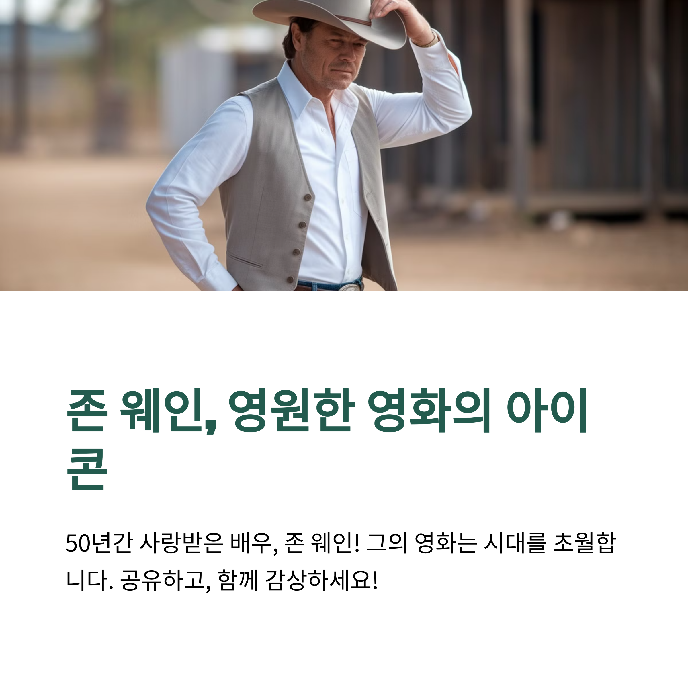 존 웨인은 단순한 영화 배우가 아니라, 서부극의 전설이자 할리우드 영화의 상징적인 존재였다.