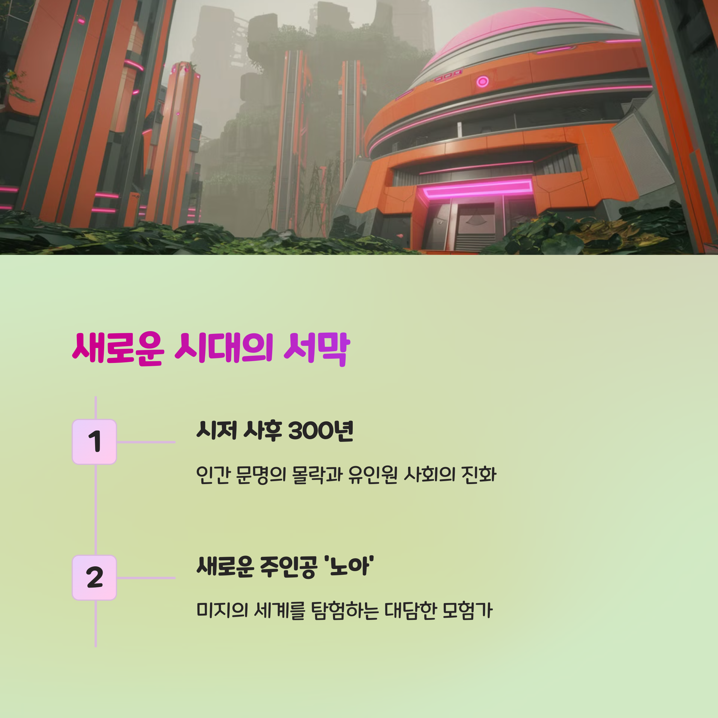 이 작품은 시저가 세상을 떠난 지 약 300년 후의 세계를 배경으로 합니다. 우리가 알던 그 치열한 투쟁의 시대는 지났지만, 역사가 증명하듯 "평화는 늘 폭풍 전의 고요일 뿐"입니다. 새롭게 진화한 유인원 노아는 우연히 발견한 시저의 유산을 통해, 퇴화된 인간들과 얽힌 복잡한 여정 속에서 자유를 위한 발걸음을 내딛습니다.