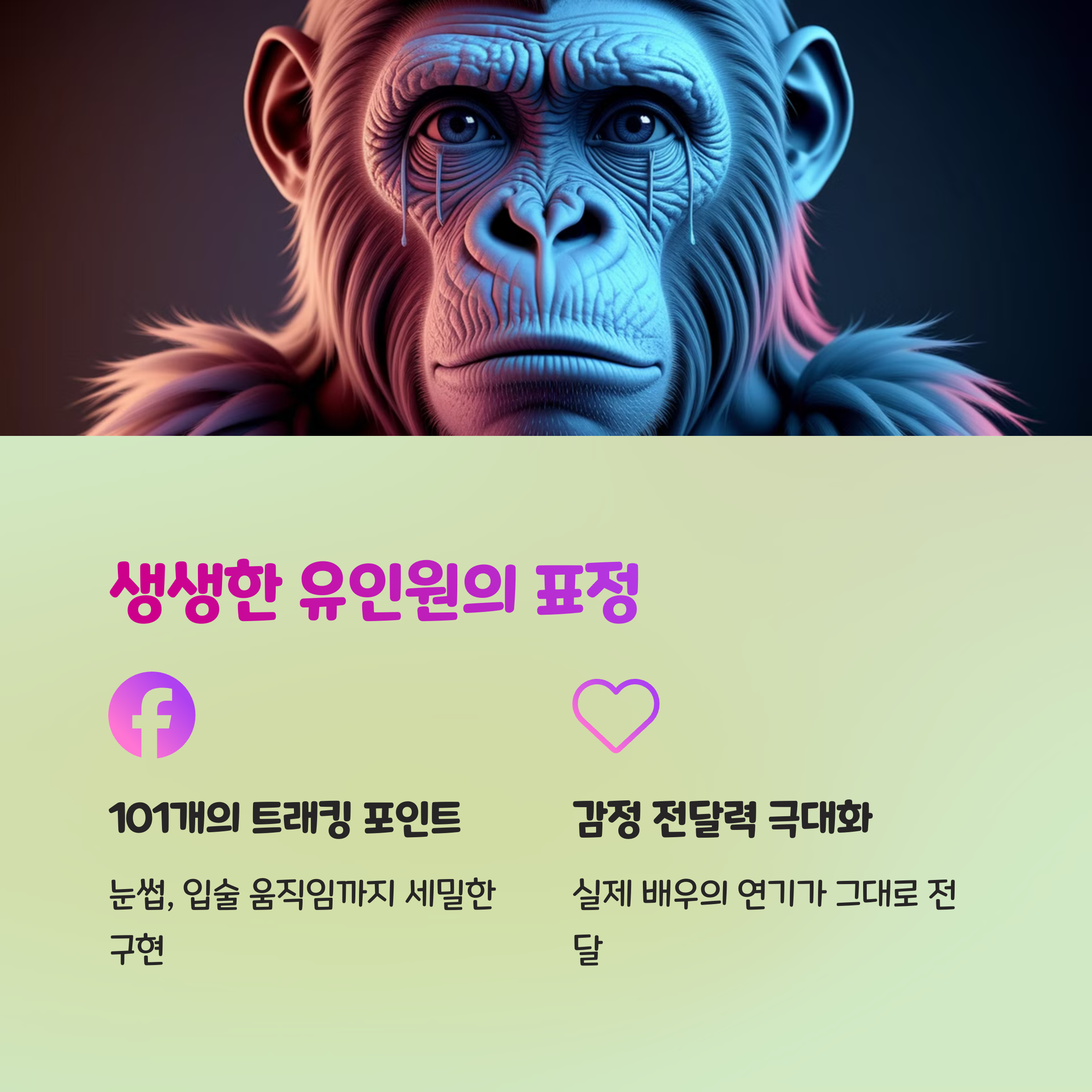 특히 영화의 러닝타임 144분 동안 보여준 VFX 기술력은 영화 속 세계를 마치 직접 체험하듯 생생하게 만들었습니다. 일부 관객은 "유인원의 미세한 표정 변화까지 표현한 기술력이 정말 놀랍다!"고 극찬하며 디지털 기술의 한계를 뛰어넘었다고 평가했습니다.