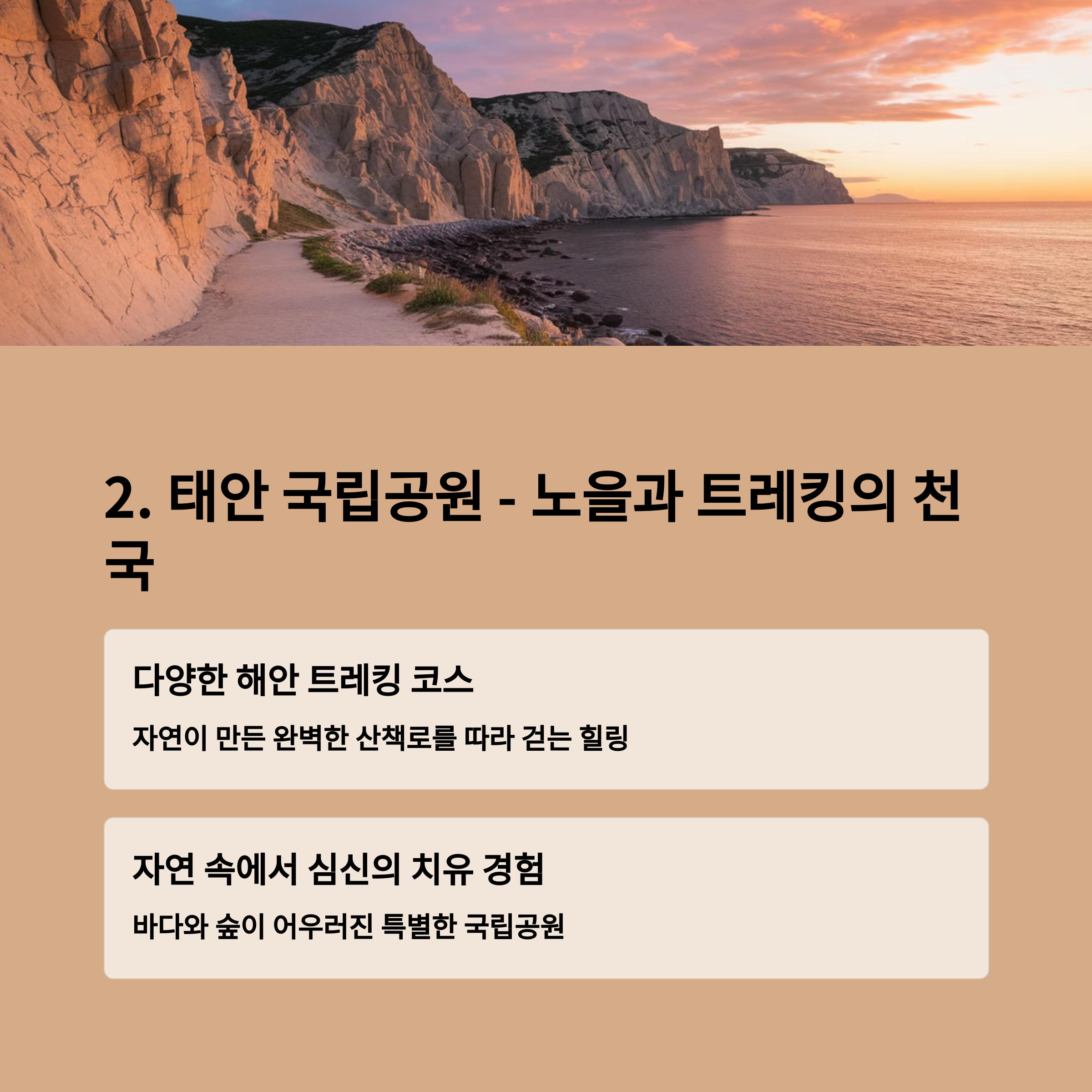 2. 태안 국립공원: 노을과 트레킹으로 마음 치유