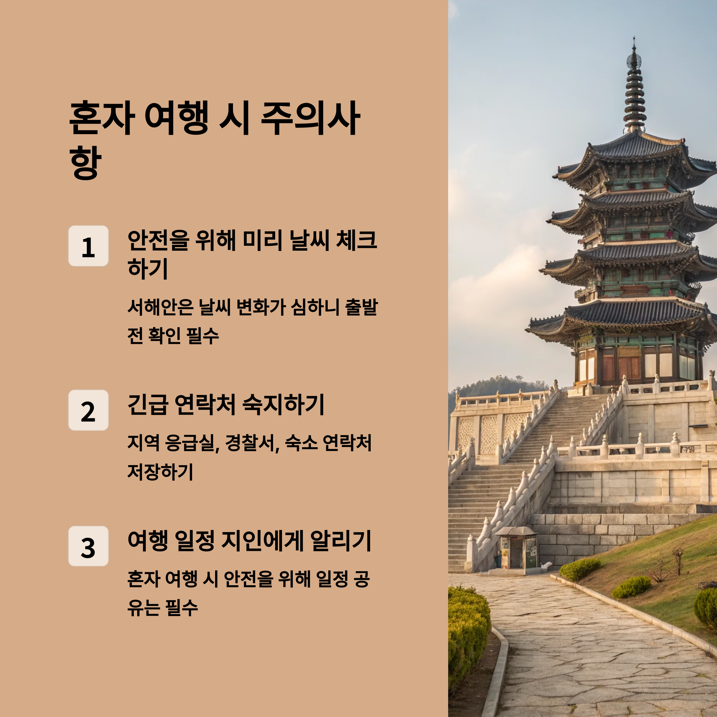 혼자 떠나는 여행은 자유롭지만, 몇 가지 주의할 점이 있어요.