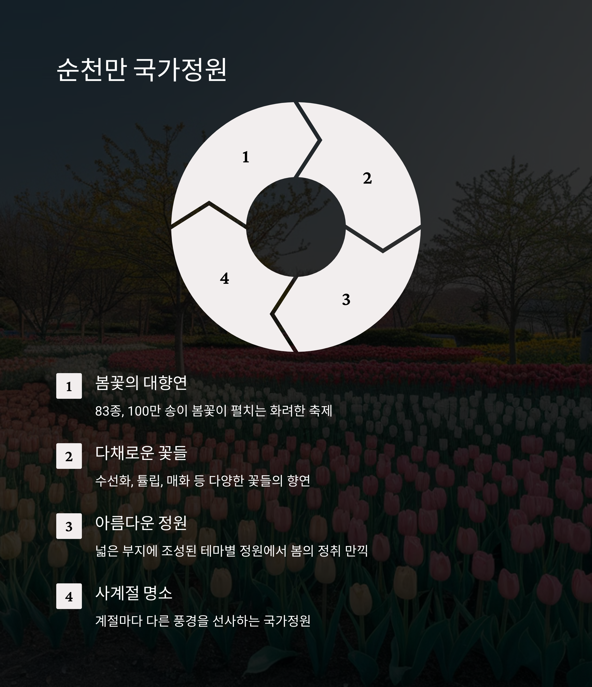 전남 순천시에 위치한 순천만 국가정원은 3월부터 다양한 봄꽃이 차례로 피어나는 113만㎡ 규모의 거대한 정원입니다. 지난해 방문객 수는 총 670만 명으로, 그중 3월 방문객은 약 58만 명을 기록했습니다.